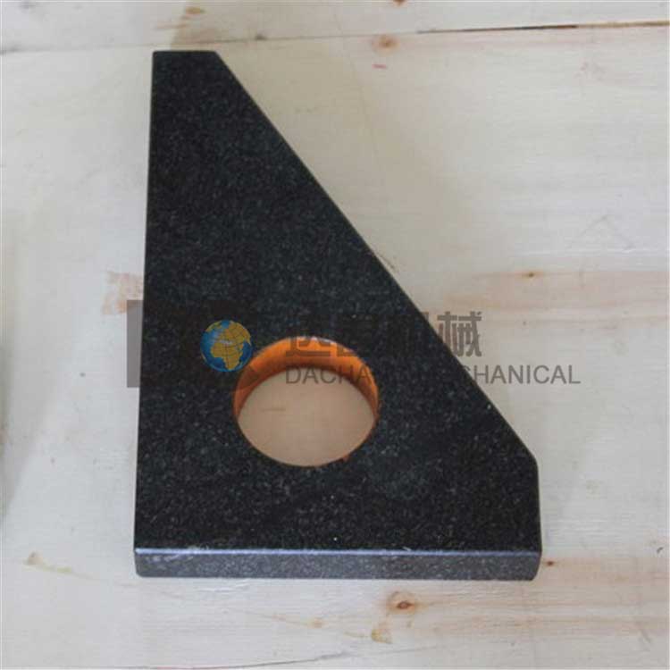 大理石直角尺適合于垂直度的檢測。平面精度標準GB6092-85,垂直度標準GB6092-85,為減少重量及方便加工而增加了減輕重量的小孔。